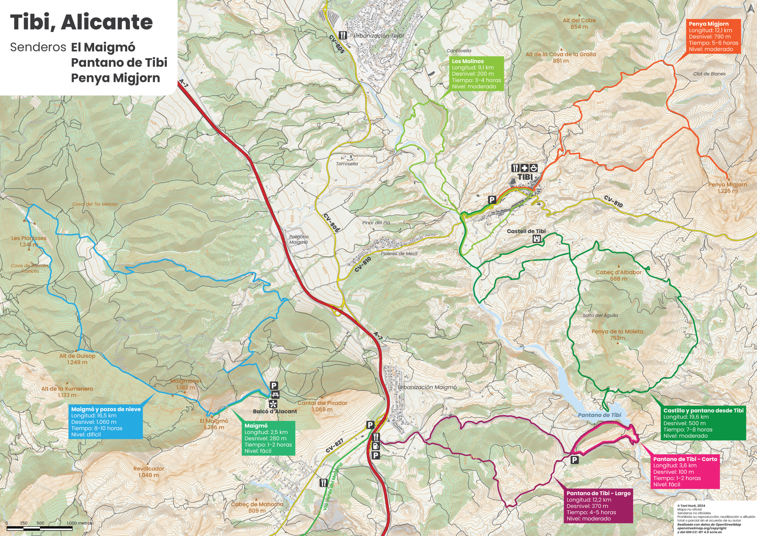 Mapas de senderismo, rutas en bici, escalada o actividades al aire libre.